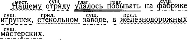 Упр. 255 1. В парке я встретил и дедушку, и брата, и товарищей. — В парке я не встретил ни дедушки, ни брата, ни товарищей. 2. В спортлагере я занимался и волейболом, и футболом, и баскетболом. — В спортлагере я не занимался ни волейболом, ни футболом, ни баскетболом. 3. Нашему отряду удалось побывать и на фабрике игрушек, и на стекольном заводе, и в железнодорожных мастерских. — Нашему отряду не удалось побывать ни на фабрике, ни на стекольном заводе, ни в железнодорожных мастерских. 4. Для модели подойдут и медные, и цинковые, и латунные пластинки. — Для модели не подойдут ни медные, ни цинковые, ни латунные пластинки. 5. Ошибки оказались и в начале, и в середине, и в конце диктанта. — Ошибок не оказалось ни в начале, ни в середине, ни в конце диктанта. 6. Сестрёнка любит и вязать, и шить, и готовить. — Сестрёнка не любит ни вязать, ни шить, ни готовить. Синтаксический разбор предложения