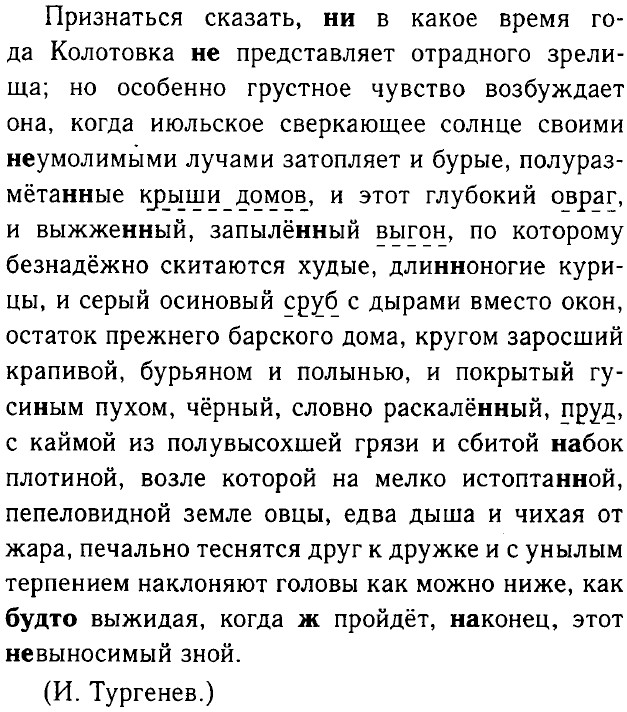 Повествовательное, невосклицательное, простое, односоставное, безличное, распространённое, осложнено однородными обстоятельствами. Упр. 256 Трамваи проезжали по улице Степана Разина и туда и сюда. На митинг спешили и стар и млад. Люди трудились ради Великой Победы и день и ночь. Огромна наша страна — ни конца ни края. Движение на улицах больших городов- мегаполисов не замирает ни днём ни ночью. Упр. 257 Самые, казалось бы, несоединимые черты — мечтательность и действенность, полёт фантазии и практицизм, любовь к добру и беспощадность, широта души и трезвый расчет, страстная любовь к радостям земным и самоограничение — эти, казалось бы, несоединимые черты вместе создали еповторимый облик этого поколения. (А. Фадеев.) Антонимы: мечтательность — практицизм, любовь — беспощадность, широта души — трезвый расчёт. Упр. 258 Мы не можем представить себе жизнь нашей страны без Кремля, без Пушкина и Толстого, Чайковского и Шаляпина, без Медного всадника в Ленинграде и Третьяковской галереи в Москве. (К. Паустовский.) Упр. 259