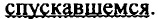 1. Спускавшемся — причастие. В овраге (каком?) спускавшемся. Признак предмета по действию.