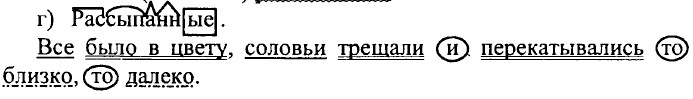в) 1. Рассыпанные — причастие. Ели (какие?) рассыпанные, признак предмета по действию.