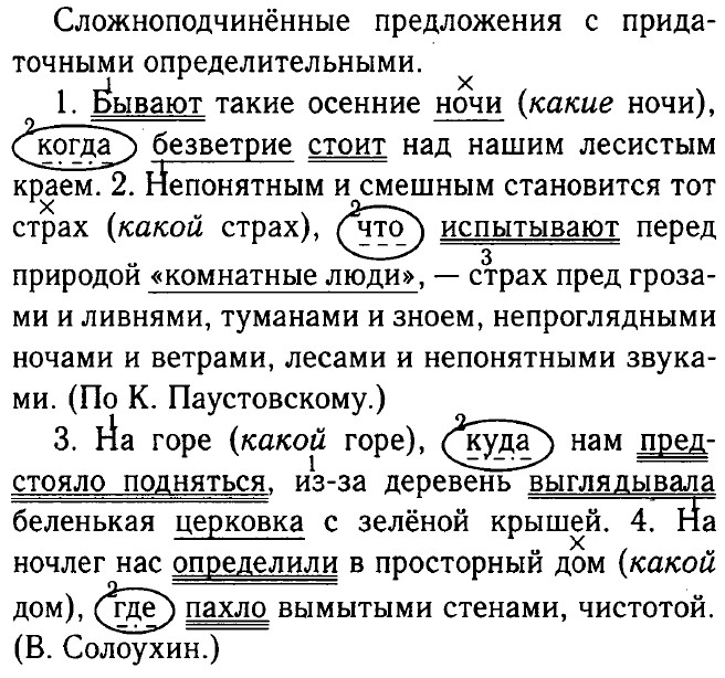 Упр. 109 1. Синтаксисом называется раздел науки о языке, который изучает словосочетания и предложение. 2 Словосочетание — это единица синтаксиса, которая представляет собой сочетание двух или нескольких самостоятельных слов, связанных друг с другом по смыслу и грамматически. 3. Предложение, в котором есть оба главных члена — подлежащее и сказуемое, называется двусоставным. 4. Дополнением называется второстепенный член предложения, который отвечает на вопросы косвенных падежей. 5. Безличным называется такое односоставное предложение, в котором главный член, сказуемое, не выражает значение лица. Упр. 110 I. Дорога, на которой показались всадники, вела к станции. II. Дятел сел на ту же берёзу, на которой он утром шелушил шишки. III. Холм, на котором возвышался помещичий дом, был окружён со всех сторон еловым лесом. Упр. 111