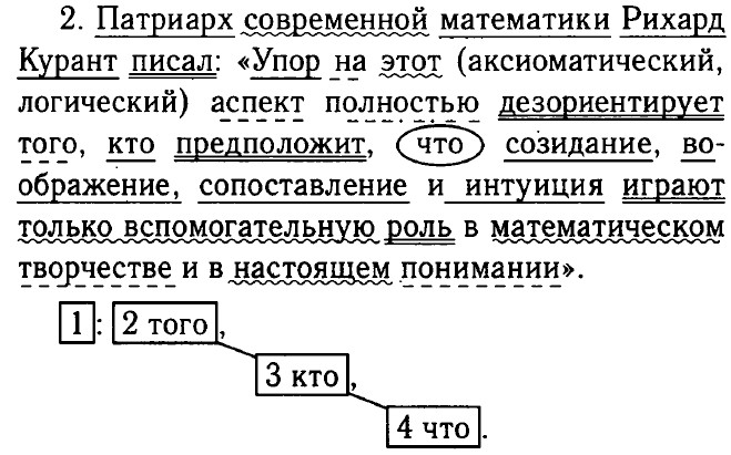 Упр. 213 — устно. Упр. 214 Аксиоматический — прилагательное от слова аксиома — положение, принимаемое без доказательств. Дезориентирует — вводит в заблуждение, лишает правильной ориентации, правильного представления о чём-либо. Интуиция — чутьё, проницательность; безотчётное проникновение в самую суть чего-либо. Дедуктивный — прилагательное от дедукция — способ рассуждения от общих положений к частным. Догматических — основанных на положениях, которые принимаются как непререкаемые; не допускающих возражений. Пресловутое — широко известное, нашумевшее, но сомнительное или заслуживающее отрицательной оценки. Синтаксический разбор предложения