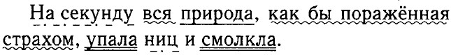 1. Повествовательное. 2. Невосклицательное. 3. Грамм, основа — 4. Распространённое, осложнено сравнительным оборотом. 5. Члены предложения: а) подлежащее — природа, сущ., ж. р., ед. ч, 1-е скл., им. п.; б) сказуемое — упала и смолкла, простые глагольные однородные члены, глаг., I спр., изъяв, накл., ед. ч., прош. вр., ж. р.; в) обстоятельство — на секунду, сущ. с предл., в. п., ж. р., ед. ч., 1-е скл.; ниц — наречие, неизмен. Упр.272 Август — месяц света и тепла. Август — пора деревенской страды: что соберёшь, то и в закрома засыплешь. А в саду август-густарь — всего густо. Яблоки наливаются, сочнеют. Вишня так и просится в кузовок. Садоводы малину уже обирают давно, а ягоды всё спеют и спеют. Август — время цветения самых пышных цветов: астр и георгинов. Август — щедрый месяц. (А. Стрижев.) Тире между подлежащим и сказуемым является знаком выделения. Упр. 273 Завтра — свет или тьма?В мирной жизни следующий день не является проблемой, он не уравнение со всеми неизвестными, а простая арифметическая задача. «Завтра» становится пугающим и жутким, только когда его больше нет, когда земля проваливается из-под ног, ускользает из рук, как подрубленное дерево, раскалывается и ухает вниз. (И. Сабурова.) Упр. 274 Посыпанный, намазанный, отрезанный, изобретение, не о порохе, не о книгопечатанье, не о денежных знаках, не о паровой машине, не о водородной бомбе, считал, величайшим, не могла, не врезаться, не был голоден, объел, нестриженый висок, распоясал, кручёную бечёвку, не рассказывать, не видел, степенного и уравновешенного, не последний же кусок, не обеднела, никто, не остался, исключено, противостоял. Упр. 275 — устно. Упр. 276 1. Не помню, кто из поэтов сказал: «Поэзия всюду, даже в траве. Надо только нагнуться, чтобы поднять её». Было раннее утро. Накрапывал дождь. Телега въехала в вековой сосновый лес. В траве на обочине дороги что-то белело. Я соскочил с телеги, нагнулся и увидел дощечку, заросшую вьюнком. На ней была надпись чёрной краской. Я отвёл мокрые стебли вьюнка и прочёл почти забытые слова: «В разные годы под вашу сень, Михайловские рощи, являлся я». Потом я натыкался на такие дощечки в самых неожиданных местах: в некошеных лугах над Соротью, на песчаных косогорах по дороге из Михайловского в Тригорское, на берегах озёр Маленца и Петровского — всюду звучали из травы, из вереска, из сухой земляники простые пушкинские строфы. 2. Найти место старых сосен было трудно: от них не осталось даже пней. 3. В пушкинском заповеднике три огромных парка: Михайловский, Тригорский и Петровский. Все они отличаются друг от друга, так же как отличались их владельцы. (К. Паустовский.)