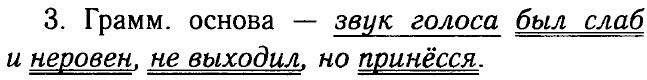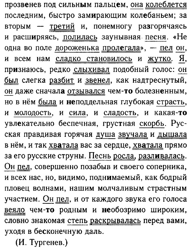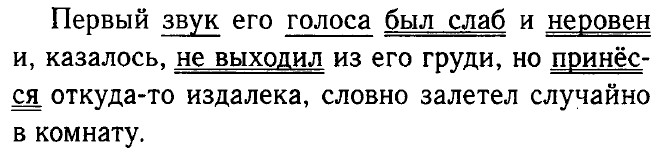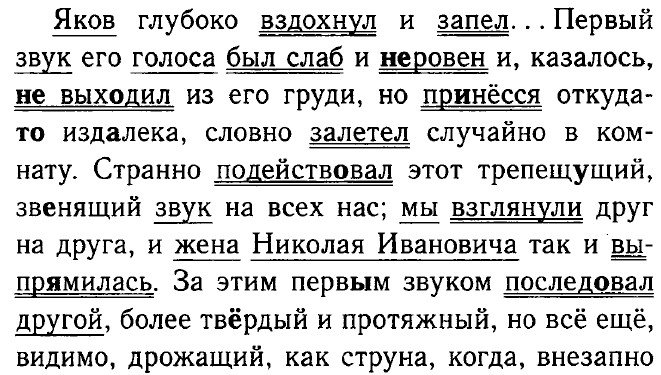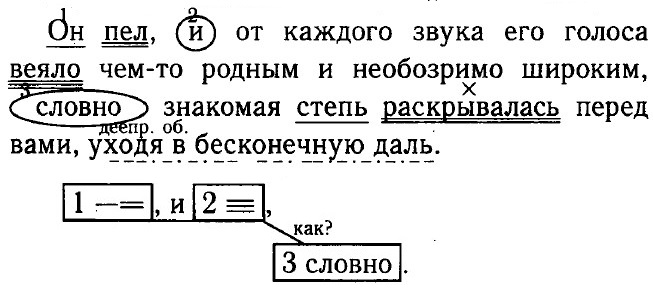 4. Распространённое, осложнено вводным словом, сравнительным оборотом, однородными членами. 5. Члены предложения: а) подлежащее — б) сказуемое — был слаб и неровен (составное именное: глагол-связка был + кратк. ф. прил.), не выходил (прост, глагольное, глаг., изъяв, накл., прош. вр., ед ч., м. р.,) принёсся (прост, глагольное, глаг., возврати., изъяв, накл., прош. вр., ед. ч. м. р.; в) определения — первый (числит., порядк., простое, ед. ч., м. р.), его (мест., притяж., м. р.); г) обстоятельства — откуда-то (нареч.), издалека (нареч.), словно залетел случайно в комнату (сравн. оборот, присоединяется при помощи союза словно). Упр. 279 — сочинение.