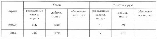 Откройте атлас 1. С помощью карт атласа укажите страны, располагающие наиболее широким «ассортиментом» природных ресурсов (минеральных, почвенных, растительных, водных и др.). Это я знаю 2. Какие из перечисленных государств обеспечены практически всеми известными ресурсами: 1) Россия, Япония, США; 2) США, ЮАР, Бразилия; 3) Россия, США, Китай? 3. Установите соответствие: 1) нефть; 2) медь; 3) фосфориты; А) Чили; Б) Кувейт; В) Марокко. 4. От каких факторов зависит размещение природных ресурсов на планете? Можно ли утверждать, что оно не зависит от человека вообще? 5. Приведите примеры стран, обладающих богатым природным потенциалом, но не достигших, по вашему мнению, больших успехов в социально-экономическом развитии. 6. Когда речь идет о возобновимых природных ресурсах, имеется в виду возможность их самовосстановления и культивирования. Приведите конкретные примеры возобновимых ресурсов. Почему нефть, газ и уголь считаются невозобновимыми ресурсами? 7. Почему полностью безотходная технология нереальна? Это я могу 8. Рассчитайте обеспеченность Китая и США углем и железной рудой, используя данные таблицы (цифры по запасам и добыче даны на начало XXI в.).