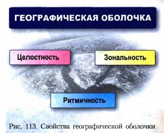 Каковы свойства географической оболочкиГеографическая оболочка обладает особыми свойствами, которые появляются вследствие тесного взаимодействия между её частями (рис. 113). Во-первых, это целостность. Действительно, и вода, и воздух, и живые организмы проникают в верхние слои литосферы. В водах Океана и суши растворены газы, распространены твёрдые частицы из литосферы, обитают животные и растения. Масса большинства организмов состоит в значительной степени из воды. Почва сочетает в себе живое и неживое вещество. При этом изменение в одной из оболочек обычно сказывается на остальных. Между компонентами географической оболочки обязательно происходит обмен веществом и энергией — круговорот.