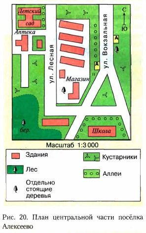 План и карта Ориентирование на местностиПлан даёт представление о небольшом участке территории и помогает ориентироваться на нём. По плану можно определить взаимное расположение объектов и их приблизительные размеры. В повседневной жизни мы часто пользуемся разными видами планов (рис. 20). Чтобы удобно расставить мебель в квартире, мы рисуем план комнат. Перед экскурсией мы приобретаем план города и, изучив его, свободно ориентируемся в незнакомом месте.