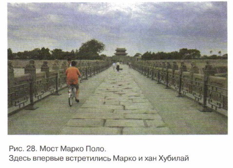 Однако семейству Поло повезло — они благополучно прибыли ко двору китайского императора — хана Хубилая (рис. 28). Хан принял братьев Поло очень приветливо, а Марко даже предложил должность личного секретаря. Причина такого отношения к чужестранцам кроется в любознательности хана. Его интересовало, как живут в других странах. Вы спросите: на каком же языке Хубилай общался с европейцами? На своём родном! Дело в том, что Марко Поло за годы пути выучил несколько языков.