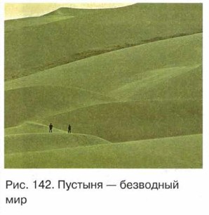 Значение гидросферыРоль воды в жизни нашей планеты, отдельных компонентов природы, каждого живого существа огромна. Она входит в состав всех организмов. Помните, на уроках биологии рассказывалось о клеточном соке — цитоплазме? Что это такое? Это водный раствор различных солей. Но ведь из клеток состоят абсолютно все организмы планеты. А значит, вода — это основа жизни. Именно поэтому нам необходимо пить воду. И вместе с нами её пьют слоны и воробьи, кактусы и одуванчики — все обитатели нашей планеты. Богатство и разнообразие природы напрямую зависит от наличия воды. Из-за отсутствия воды, пригодной для питья, так скуден животный и растительный мир пустынь. Именно поэтому так трудно живётся там людям (рис. 142).