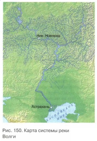 В крупную реку могут впадать реки меньшего размера, которые называются притоками. Река с притоками образует речную систему (рис. 150). А вся площадь, с которой река собирает воду, называется бассейном реки. Граница между соседними речными бассейнами называется водоразделом.