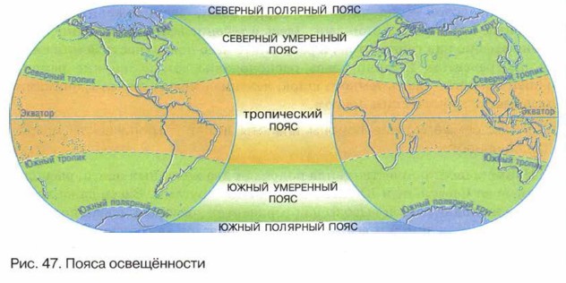 Про пояса освещённости мы ещё обязательно вспомним, когда будем изучать тему «Атмосфера».