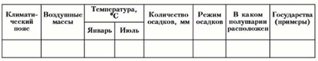 Это я знаю 1. Перечислите основные климагообразующис факторы. Какой фактор самый главный? 2. Объясните, как влияет подстилающая поверхность на климат территории. 3. Приведите примеры влияния удалённости от океанов на климат территории. Чем 4. отличается основной климатический пояс от переходного? Это я могу 5. По карте «Климатические пояса и области Земли» назовите основные и переходные климатические пояса. 6. Определите тип климата но совокупности признаков: температура января -10... -15 °С, июля +20... +25 °С. Осадки выпадают в течение года, но с летним максимумом. Головая сумма осадков 250-300 мм. На каких материках представлен такой тип климата? 7. По климатической диаграмме (см. рис. 35) определите тип климата. 8. Заполните таблицу.
