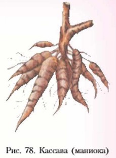 Материки и страны Африка: путешествиеОт Томбукту до ЛагосаЮжнее осадков становится ещё больше, и постепенно появляются высокотравные саванны (аналог степей и лесостепей) с богатым растительным и животным миром. Под крылом нашего самолёта — огромрая, выгнутая к северу излучина (излучина изгиб — русла реки) реки Нигер с многочисленными протоками и островками. Как говорят африканцы, здесь «верблюд встречается с лодкой». В сезон дождей (с июля по октябрь) паводковые воды приносят плодородный ил. Местные жители занимаются не только животноводством, но и земледелием. Для вывоза в другие страны выращивают арахис и хлопчатник, используя для полива воды Нигера. Вдали от реки возделывают засухоустойчивые культуры — просо, сорго, неполивной рис, а также распространенные в Африке ямс и кассаву (рис. 78), чьи клубни напоминают сладкий картофель.