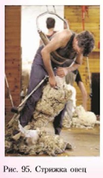 Австралийский СоюзАвстралия — одно из наиболее высокоразвитых и богатых государств в мире. До сих пор главой государства Австралийский Союз является английская королева. Столица страны — Канберра. Австралия занимает первое или «призовые» места в мире но вывозу овечьей шерсти, мяса, масла, пшеницы, алмазов, бокситов, железной руды, марганца, свинца, каменного угля, урана. Карга страны буквально усыпана значками добываемых полезных ископаемых. Большинство из них расположено по периметру страны-континента. Разведка и добыча нефти в районе Большого Барьерного рифа запрещены в целях сохранения этого чуда природы. На пастбищах во всех районах страны круглый год разводят скот. Овцеводством больше всего занимаются на западе и юго-востоке. Стрижка овец — традиционное занятие австралийских фермеров (рис. 95). В стране даже проходят чемпионаты, на которых «овечьи парикмахеры» демонстрируют свою сноровку.