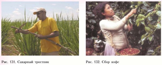 Материки и страны БразилияБразильцы: происхождение, занятия, образ жизниНаселение страны, несмотря на свою пестроту, в основном сформировано переселенцами из Португалии и привезёнными в своё время для работы на плантациях африканцами. Расовый состав населения примерно такой: белые — 55%, чернокожие — 11%, мулаты — 22%, метисы — 12%. Индейцев, не смешавшихся с белыми и сохранивших свой образ жизни, очень мало только 0,2% населения Бразилии. Несмотря на интенсивное освоение внутренних районов и бассейна Амазонки, почти 1/2 бразильцев живут в приатлантической полосе, занимающей лишь 7% территории страны. В городах проживает 80% бразильцев. Государственный и разговорный язык почти всего населения португальский. Наиболее густо заселены земледельческие прибрежные районы Северо-Востока Бразилии, где выращивают сахарный тростник (рис. 131), какао, хлопчатник, сою.