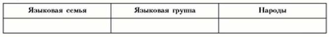 Это я знаю 1. Чем народы отличаются друг от друга? 2. Что такое языковые семьи? 3. Назовите: а) самые распространённые языки в мире; б) официальные международные языки. 4. Выберите верный ответ. Наиболее распространённая религия на севере Африки и в Юго-Западной Азии: а) иудаизм; б) синтоизм; в) ислам; г) буддизм. 5. Какие вы знаете национальные религии? Это я могу 6. Но карте «Народы и плотность населения мира» в атласе выясните, какие существуют языковые семьи и группы, какие народы к ним относятся. Заполните таблицу.