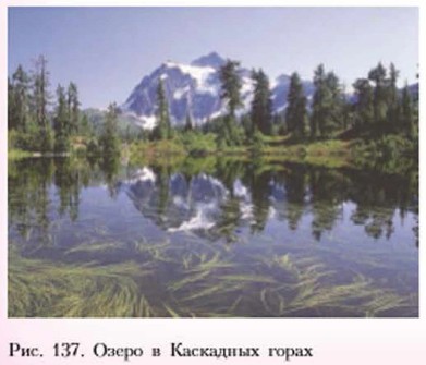 Как рельеф и климат Северной Америки влияют на её природу?Разнообразие рельефа и климата Очкиной Америки объясняет и особенности внутренних иод. Например, одна из характерных особенностей материка максимальная среди всех континентов доля площади, занятая озёрами (рис. 137). Здесь около двух десятков крупных озёр, включая уникальный комплекс Великих озёр — Верхнее, Мичиган, Гурон, Эри, Онтарио.