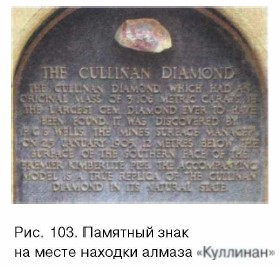 Африка — материк коротких теней Геологическое строение и рельеф АфрикиПолезные ископаемыеНа физической карте видно, что Восточная и Южная Африка расположена несколько выше над уровнем моря, чем северная и западная части материка. Но различаются они не только высотой. Поверхность Северной и Западной Африки в прошлом была дном моря, а сейчас подвергается активному физическому выветриванию. Она сложена в основном осадочными горными породами как континентального, так и морского происхождения. А на поверхности Южной и Восточной Африки находятся очень древние магматические горные породы, которые залегали в основании древних горных сооружений. Именно поэтому полезные ископаемые в разных частях Африки различны. На севере и западе материка преобладают полезные ископаемые осадочного происхождения. Здесь находятся крупные запасы нефти, которые очень активно разрабатываются. Кроме того, велики запасы фосфоритов, являющихся ценным сырьем для производства удобрений. Главное богатство южной части Африки — полезные ископаемые магматического происхождения, и прежде всего руды самых разных металлов. Эта часть материка особенно богата золотом, ураном, медью. Здесь расположены богатейшие месторождения алмазов. Именно здесь из месторождений ЮАР, Намибии и Ботсваны добывается значительная часть всех алмазов мира. В 1905 г. на юге Африки был найден крупнейший в мире алмаз, которому дали имя «Куллинан». Вес драгоценных камней ювелиры определяют в специальных единицах измерения — каратах. Так вот, вес «Куллинана» составил 3106 каратов! Это около 600 граммов, алмаз-гигант был размером примерно с небольшой кулак (рис. 103).