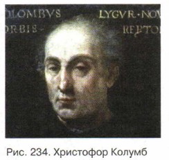 Из истории открытия и исследований АмерикиЛюди не сразу поняли, что существует две Америки: Северная и Южная. Да и само название «Америка» появилось не сразу. Первоначально земли, открытые на другом берегу Атлантического океана, называли просто — Новый Свет. Открыватель этого материка известен. Это человек сложной судьбы, итальянец, состоявший на службе сначала у португальского, а потом у испанского короля, — Христофор Колумб (рис. 234) или, как его называли в Испании, Кристобаль Колон... Великий мореплаватель, открыватель нового материка...