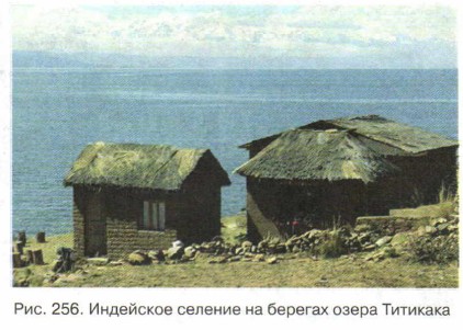Южная Америка — материк чудес Гидрография Южной Америки. ГеографияОзера Южной АмерикиНа поверхности Южной Америки мало замкнутых понижений, поэтому здесь не слишком много больших озер. Собственно, их всего два, и они по-своему замечательны. На обширном плоскогорье на границе Перу и Боливии в Андах расположено озеро с удивительным названием Титикака, которое в переводе означает «скала у места добычи руды» (рис. 256). Это самое большое из высокогорных озер планеты. Действительно, большие по размерам озера часто встречаются на равнинах. Горные же озера, как правило, по размерам невелики. Так вот, озеро Титикака является исключением из этого правила. Расположенное на высоте почти 4 км над уровнем моря, оно имеет площадь более 8 тыс. км2, а глубина превышает 300 м.