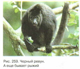 И все-таки главная жизнь в сельве сосредоточена не на поверхности земли, а на деревьях, правда, разглядеть ее очень непросто. Ученые не знают и половины животных, обитающих там. Многочисленны обезьяны, среди которых особенно заметны обезьяны-ревуны (рис. 259).