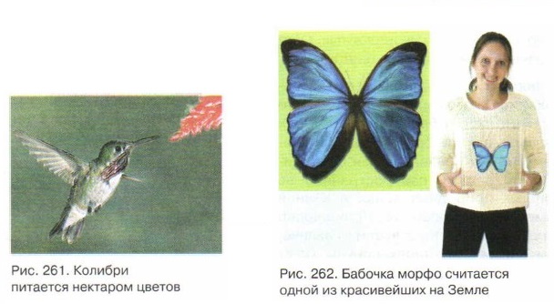 Самыми яркими обитателями леса являются птицы и бабочки. Причем птицы могут быть крошечные (рис. 261), а бабочки — огромные (рис. 262).
