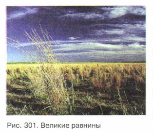 В основании большей части материка лежит древняя Северо-Американская платформа. На этой спокойной в геологическом отношении поверхности находятся обширные равнины. На юге, вдоль берегов Мексиканского залива, расположена плоская, сложенная речными отложениями, Примек- сиканская низменность. Среднюю часть материка занимают Центральные и Великие равнины (рис. 301). Они огромными ступенями поднимаются в направлении с востока на запад.