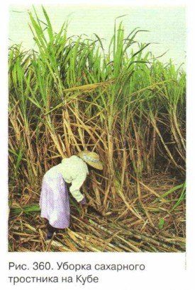 Северная Америка — знакомый незнакомец Регионы Северной Америки. ГеографияСтолица Мексики — Мехико — с населением 26 млн человек является крупнейшим городом планеты. Расположен Мехико на высоте более 2 тыс. м над уровнем моря. На этой высоте в воздухе намного меньше кислорода, чем на равнине. С этой проблемой столкнулись спортсмены — участники Олимпийских игр 1968 г. Всем приехавшим на игры пришлось проходить акклиматизацию, то есть привыкать к разреженному воздуху. Тем не менее на этой Олимпиаде был установлен рекорд в прыжках в длину, который не побит до сих пор. Спортсмен из США Боб Бимон прыгнул на 8 м 90 см. Может быть, потому, что разреженный воздух Мехико не помешал спортсмену выполнить этот фантастический прыжок? Промышленность развита только в Мексике: много заводов, производящих металл, химическую продукцию, автомобили, морские суда. Однако главное значение в регионе имеет сельское хозяйство. Долгое время отличительной чертой сельского хозяйства Центральной Америки было выращивание тропических фруктов, которые поставлялись во многие страны мира. За эту особенность страны региона называли «банановыми республиками». Хотя сейчас в этих странах происходят серьезные изменения, «прозвище» по-прежнему остается справедливым. Кубу называют еще и «мировой сахарницей»: здесь выращивается сахарный тростник, по сбору которого эта небольшая страна входит в группу мировых лидеров (рас. 360). Еще одной известной на весь мир отраслью сельского хозяйства Кубы является табаководство. Сигары, скрученные в этой стране, считаются лучшими в мире.