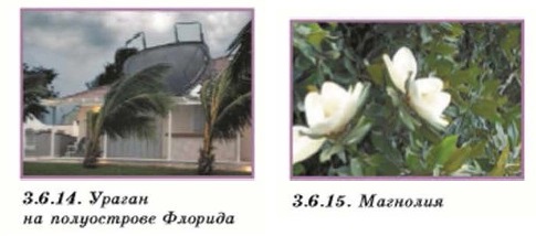 В более влажных местах растут субтропические леса из оплетённых лианами ясеней, тополей, магнолий. Самые низкие участки заняты болотами с особой растительностью: болотные кипарисы и образующие непроходимые заросли болотные травы. На влажных участках жаркого южного побережья выращивают рис, сахарный тростник, большие площади заняты цитрусовыми и виноградом. Флорида — крупнейший курортный район США. Вопросы и задания Расскажите об ортаническом мире Гренландии и Канадского Арктического архипелага. Назовите природные районы равнинного Востока материка. Покажите их на физической карте. Почему температуры на равнинах Канады ниже, чем в других районах на этих же широтах? В чём сходство и различия Центральных и Великих равнин? Обьясните причины возникновения катастрофических атмосферных явлений на равнинах Северной Америки.