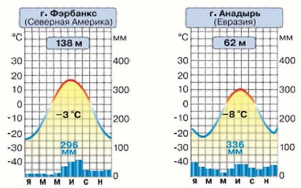 В субарктическом и субантарктическом (переходных) поясах зимой господствует арктическая (антарктическая) воздушная масса, а летом — воздух умеренных широт. Лето прохладное, короткое и влажное, зима продолжительная, суровая и малоснежная. Распространены тундры.