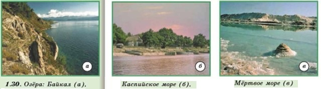 Природа Земли: главные закономерности 8. Размещение вод сушиОзёраОзёр на Земле очень много, их площадь более 2 млн км2 — близка к размерам Средиземного моря. Размещение озер на материках зависит от наличия природных углублений (котловин) и климата. Много сточных полноводных озёр с пресной водой во влажном климато. В засушливом климате озёр меньше, они часто бессточные и имеют солёную воду. Наибольшее количество озёр — на севере Северной Америки и Евразии, где влажный климат и много тектонических впадин, углублённых древним ледником.