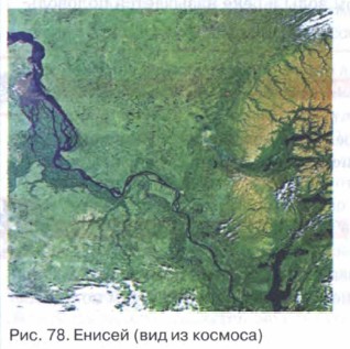 Моря и внутренние воды России § 18. Реки РоссииВспомните Какая река планеты имеет наибольшую длину? Какая река на Земле является наиболее полноводной? Суммарная длина всех рек страны превышает 6,5 млн км. Малые водотоки, сливаясь, образуют и питают более крупные реки. Россию можно с полным основанием считать страной больших рек. В число крупнейших рек планеты входят четыре российских реки: Амур, Енисей (рис. 78), Лена и Обь. Волга является самой длинной рекой Европы. Бассейн её тоже самый большой в Европе. Реки России принадлежат бассейнам Атлантического, Северного Ледовитого и Тихого океанов.