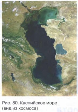 Моря и внутренние воды России 19. Озёра и болота РоссииВспомните Как различаются озёра по происхождению озёрной котловины? Почему бессточные озёра бывают солёными? Озёра РоссииОзером называется заполненное водой крупное естественное понижение земной поверхности (котловина).Озёра характеризуются разнообразным гидрологическим режимом, отличаются по размерам и происхождению котловин. По происхождению озёрных котловин различают тектонические, ледниковые, вулканические, морские, термокарстовые, речные и другие озёра. На территории России находится более 2 млн озёр. Их суммарная площадь составляет больше 500 тыс. км2. Ни в одной стране мира нет такого количества и разнообразия озёр. Частично в пределах нашей страны находится крупнейшее по площади озеро планеты — Каспийское (рис. 80).