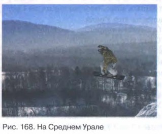 Урал § 38. Климат и внутренние воды УралаВспомните как проявляется «барьерная роль» Урала в формировании климата России? Что такое орографические осадки? Климат УралаНа климат региона большое влияние оказывают, во-первых, атлантические воздушные массы, во-вторых, соседство Северного Ледовитого океана и, наконец, большая протяжённость гор. Меридиональная вытянутость горной системы изменяет величину поглощённой солнечной „ радиации в её северных и южных районах почти в два раза. Это обусловливает существенные климатические отличия этих районов. Полярный Урал расположен в субарктическом поясе, а Южный Урал — в южной части умеренного пояса. Зимой и летом погоду на Урале определяют проникающие с запада ци- - клоны. При подъёме воздуха по западному склону гор образуются орографические осадки. На восточном, подветренном склоне осадков почти в два раза меньше — 300-400 мм. Большое влияние оказывает и Арктика. Зимой воздушные массы из Арктики свободно проникают вдоль Урала далеко на юг, что приводит к сильным похолоданиям. Летом регион испытывает воздействие со стороны горячих и сухих воздушных масс, поступающих из Средней Азии. Они могут быть причиной засух па юге Урала. Зима на Урале довольно холодная. Средние январские температуры изменяются от -22°С (на севере) до -16°С (на юге региона). В отдельные дни морозы могут достигать -40°С и ниже. На западных склонах гор зима немного мягче, с большим количеством снега. Восточные склоны Урала испытывают влияние континентального воздуха Сибири. Поэтому здесь преобладает более холодная, малооблачная погода. Лето на большей части Урала достаточно тёплое, на юге даже жаркое. А вот на Полярном и Приполярном Урале лето короткое и прохладное. Поэтому наиболее благоприятными климатическими условиями для жизни населения обладают Средний и Южный Урал (рис. 168).