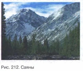 В неогене территории, находящиеся к северу от Гималаев, испытали мощное поднятие. На месте равнин образовались горы высотой до 3 тыс. м (рис. 211). Их отличительной чертой являются плоские вершины, разделённые глубокими межгорными котловинами и долинами — грабенами. Так возникли глыбовые (Байкальское нагорье) и складчато-глыбовые (Алтай, Саяны) горы (рис. 212). Тектонические движения в этих горах сохранились до настоящего времени. Их признаками являются частые и сильные (8-10 баллов) землетрясения. На вершинах некоторых наиболее высоких горных систем возникло оледенение.