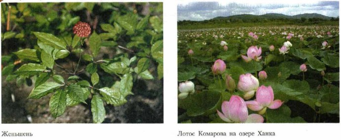 Удивительный комплекс представляет собой Уссурийская тайга. Это особая разновидность смешанных хвойно-широколиственных лесов. Здесь соседствуют сугубо таежные виды растений и животных (аянская ель, черная пихта, пятнистый олень) и виды, характерные для субтропиков: амурский бархат (пробковый дуб), маньчжурский орех, корейский кедр, тис. Много лиан, среди которых дикий виноград, лимонник. Среди животных — амурский тигр, гималайский медведь, красный волк, леопард (в заповеднике Кедровая Падь), кожистая черепаха, утка-мандаринка. Многие растения и животные не встречаются нигде, кроме муссонных лесов Восточной Азии, например знаменитый «корень жизни» женьшень, желтая и железная береза, лотос Комарова на озере Ханка, дальневосточный лесной кот и др. Столь высокое биоразнообразие и причудливое сочетание видов связано с тем, что в разные эпохи сюда мигрировали то с юга, то с севера разные группы растений и животных. При этом современные климатические условия оказались приемлемыми и для тех и для других. Такие редкие и своеобразные природные комплексы получили название «жизненные убежища».