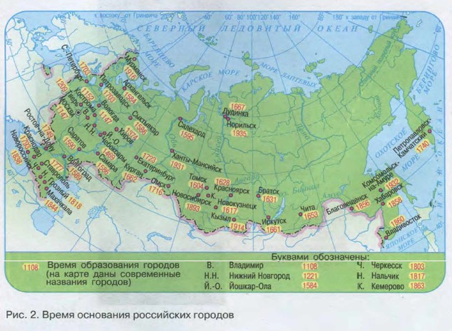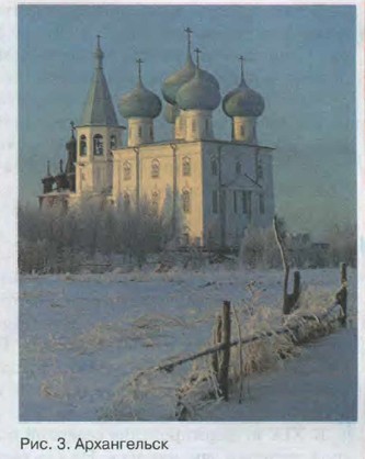 Изменение территории России с XIV по XIX в.В процессе приращения территории страны было несколько направлений роста, которые становились главными в разные периоды времени. В XIV—XVI вв. основным было направление на север и северо-восток. В результате были заселены долины рек Печора, Северная Двина, и страна вышла к берегам Белого моря. Процесс расширения территории России хорошо иллюстрируют даты основания её городов. В это время появились такие города, как Архангельск (рис. 3), Мезень, Сыктывкар. Архангельск на многие годы стал главными «морскими воротами» России.