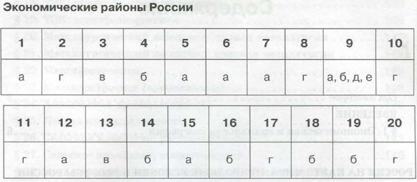 7. Экономическим районом России, где наиболее важную роль во внутренних перевозках играет морской транспорт, является: а) Дальневосточный; б) Поволжский; в) Западно-Сибирский; г) Северо- Западный. 8. Экономическим районом, для которого характерны производство зерноуборочных комбайнов, паровых котлов, атомных реакторов, добыча нефти, угля и природного газа, пёстрый национальный состав, является: а) Северный; б) Западно-Сибирский; в) Дальневосточный; г) Северо- Кавказский. 9. Отраслями специализации Урала являются: а) чёрная металлургия; б) химическая; в) лёгкая промышленность; г) электроэнергетика; д) цветная металлургия; е) машиностроение. 10. Центрами автомобилестроения являются города: а) Тольятти и Тула; б) Владимир и Челябинск; в) Москва и Волгоград; г) Набережные Челны и Тольятти. 11. Чёрная металлургия является отраслью специализации в экономическом районе: а) Центральном; б) Северо-Кавказском; в) Восточно-Сибирском; г) Центрально-Чернозёмном. 12. Крупнейшим центром тяжёлого машиностроения в России является: а) Екатеринбург; б) Нижний Новгород; в) Челябинск; г) Москва. 13. В центрах чёрной металлургии и вдоль трасс газопроводов производят удобрения: а) фосфатные; б) калийные; в) азотные; г) все перечисленные. 14. Чёрная и цветная металлургия являются отраслями специализации в экономическом районе: а) Восточно-Сибирском; б) Северном; в) Центрально-Чернозёмном; г) Северо-Кавказском. 15. Приливная электростанция работает в экономическом районе: а) Северном; б) Дальневосточном; в) Западно-Сибирском; г) Восточно- Сибирском. 16. Районом, для которого характерны разнообразие природных ресурсов (лес, руды чёрных и цветных металлов, нефть, газ, калийные соли), развитые чёрная и цветная металлургия, машиностроение и лесная промышленность, является: а) Северный; б) Уральский; в) Поволжский; г) Западно-Сибирский. 17. Наибольшая часть российского алюминия производится в экономическом районе: а) Центральном; б) Уральском; в) Западно-Сибирском; г) Восточно-Сибирском. 18. Наибольшую площадь имеет экономический район: а) Северный; б) Дальневосточный; в) Восточно-Сибирский; г) Западно- Сибирский. 19. Наибольшие площади, занятые под подсолнечником, находятся в экономическом районе: а) Центральном; б) Поволжском; в) Северо-Западном; г) Западно-Сибирском. 20. Центральный район занимает ведущее место в стране по: а) развитию чёрной металлургии; б) рыбопереработке; в) развитию целлюлозно-бумажной промышленности; г) науке и образованию. Ответы на тесты