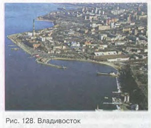 Экономико-географическое положение Дальневосточного районаДальневосточный экономический район значительно больше, чем Дальний Восток, выделяемый при природном районировании страны. В экономический район включены ещё огромные территории Северо-Востока Сибири и Республики Саха (Якутия). Основная черта ЭГП этого экономического района — значительная его удалённость от западных районов страны. По-прежнему, как и сто лет назад, запад и восток России связывают немногочисленные железные дороги и Северный морской путь. Приморское положение района, в частности, создаёт хорошие экономические перспективы: выход к Тихому океану, общая граница с Японией, Китаем, экономические контакты с которыми могут быть очень ценны для России. Природные условия и ресурсы Дальневосточного районаПриродные условия большей части территории района затрудняют её освоение. Жизнь и хозяйственную деятельность здесь крайне осложняют горный рельеф, занимающий почти 80% площади района, суровый, резко континентальный климат, огромные пространства тундры, многолетняя мерзлота. Особенно сложные природные условия характерны для территории Республики Саха, Камчатской и Магаданской областей, Чукотского АО. На юге экономического района природные условия более благоприятны, они позволяют заниматься сельским хозяйством. Минеральные ресурсы района огромны. Здесь расположены крупнейшие в мире угольные бассейны, в шельфовой зоне Охотского моря у острова Сахалин находятся значительные запасы нефти и газа. На территории района обнаружены крупные месторождения природного газа (Усть-Вилюйское), железных руд (Алданский бассейн), полиметаллов (Дальне- горек), олова, вольфрама, молибдена, золота, алмазов, слюды и других полезных ископаемых. Крупные и полноводные реки — Лена, Колыма, Индигирка, Амур и их притоки обусловили значительные водные и гидроэнергетические ресурсы. Район располагает огромными лесными и биологическими ресурсами (рыба, морской и пушной зверь, морепродукты) и др. Население Дальневосточного районаДальний Восток — экономический район с самой низкой плотностью населения в стране — около 1 человека на 1 км2. Это средняя плотность по району, а в некоторых его частях плотность населения меньше средней в десятки раз! В наибольшей мере заселена южная часть Дальнего Востока. Население в основном сосредоточено вдоль Транссибирской магистрали, в морских и речных портах. При явном преобладании численности русских население района многонационально. Здесь живут также чукчи, коряки, ительмены, нивхи, нанайцы и др. Городские жители составляют 67% населения района. Города Дальнего Востока можно считать молодыми — большинство из них появилось в XIX в. Исключение составляют Якутск и некоторые города северо-восточной части Дальнего Востока, история которых началась гораздо раньше. Крупнейшие города района — Хабаровск и Владивосток (рис. 128). Они примерно равны по числу жителей и «конкурируют» друг с другом за право называться неофициальной столицей Дальнего Востока.