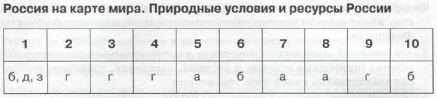 Итоговые тесты Россия на карте мира. Природные условия и ресурсы России: Итоговые тесты1. Какие народы не имеют своих национально-территориальных образований в России? а) Марийцы; б) немцы; в) манси; г) коми; д) корейцы; е) адыгейцы; ж) тувинцы; з) финны. 2. Укажите число государств, имеющих с Россией сухопутные границы: а) 9; б) 11; в) 15; г) 16; д) 18; е) 19. 3. Экономический район России, в котором нет национально-территориальных образований: а) Северный; б) Поволжский; в) Западно-Сибирский; г) Центральночернозёмный. 4. Столицей Республики Тыва является город: а) Абакан; б) Кудымкар; в) Йошкар-Ола; г) Кызыл. 5. Какой из перечисленных районов имеет наибольшие лесные ресурсы? а) Северный; б) Поволжский; в) Волго-Вятский; г) Уральский. 6. Какой из перечисленных районов относится к Восточной экономической зоне? а) Уральский; б) Западно-Сибирский; в) Северный; г) Поволжский. 7. В каком веке Северный район был главными «морскими воротами» России? а) XVII в.; б) XVIII в.; в) XIX в.; г) XX в. 8. Какими видами природных ресурсов Россия наименее обеспечена? а) Почвенными; б) лесными; в) водными; г) минеральными. 9. В каком из перечисленных районов России добывается больше всего нефти и газа? а) Волго-Вятском; б) Восточно-Сибирском; в) Северном; г) Западно- Сибирском. 10. В СНГ не входит: а) Белоруссия; б) Литва; в) Россия; г) Казахстан. Ответы на тесты