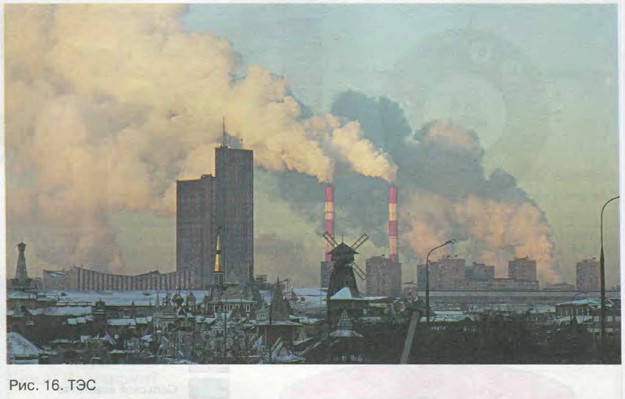 «Чистые» и «грязные» отрасли РоссииРазличные виды производства оказывают неодинаковое воздействие на природу. Есть отрасли, которые непосредственно не используют природные ресурсы, да и загрязняющих отходов производят достаточно мало. На машиностроительном заводе, например, из тысяч деталей производятся машины. Для работы завода требуются только детали, которые поступили с других предприятий, электроэнергия, которая поступает на завод по линиям электропередачи, и труд рабочих на сборочном конвейере. В сущности, такой завод не очень сильно контактирует с природой, и всё его воздействие на неё связано только с тем, что при его строительстве была занята какая-то природная территория. Такие производства можно называть относительно «чистыми». Кроме машиностроения к «чистым» можно отнести некоторые другие отрасли, например пищевую, а из видов транспорта — электрифицированный железнодорожный. Но очень многие отрасли хозяйства относятся к числу «грязных». Это прежде всего отрасли, предприятия которых работают за счёт сжигания топлива (рис. 16). Сюда же относятся и предприятия, которые используют большое количество воды. Вода, растворяя в себе огромное количество химических веществ, сама превращается в мощный источник загрязнения природы. К числу наиболее «грязных» отраслей относятся металлургия, тепловая электроэнергетика, химическая промышленность, автомобильный транспорт.