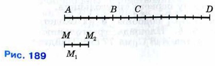 534. Пропорциональны ли изображённые на рисунке 189 отрезки: а) АС, CD и М1М2, ММ1; б) АВ, ВС, CD и ММ2, ММ1, М1М2; в) АВ, BD и ММ1, М1М2?