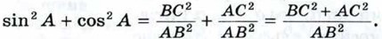 По теореме Пифагора ВС2 + АС2 = АВ2, поэтому sin2 А + cos2 А = 1. Равенство (5) называется основным тригонометрическим тождеством1. 1 Слово «тригонометрия» в переводе с греческого языка означает «измерение треугольников».