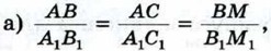 613. Докажите, что треугольники АВС и А1В1С1 подобны, если:
