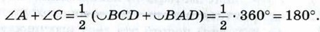 § 4. Вписанная и описанная окружности Описанная окружность (окончание)Замечание 2 В отличие от треугольника около четырёхугольника не всегда можно описать окружность. Например, нельзя описать окружность около ромба, не являющегося квадратом (объясните почему). Если же около четырёхугольника можно описать окружность, то его углы обладают следующим замечательным свойством: