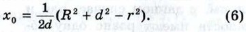 Заметим, что х0 > 0, поскольку R ≥ r и d > 0. Кроме того, как следует из первого равенства (5), R - r ≤ R + r. (7) Отметим, что х0 = R, если d = R - r или d = R + r, и x0 < R, если R - r < d < R + r.