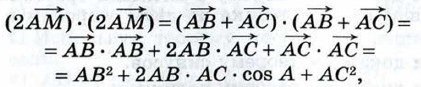 § 3. Скалярное произведение векторов Задачи к § 3. Скалярное произведение векторов (окончание)Применение скалярного произведения векторов к решению задач1054. Решение Точка М — середина отрезка ВС, поэтому
