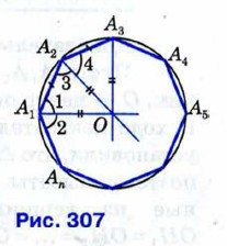 Доказательство Пусть А1А2А3...Аn — правильный многоугольник, О — точка пересечения биссектрис углов А1 и А2 (рис. 307).