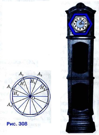 Доказательство Пусть А1А2...Аn — правильный многоугольник, О — центр описанной окружности (рис. 308). В ходе доказательства предыдущей теоремы мы установили, что