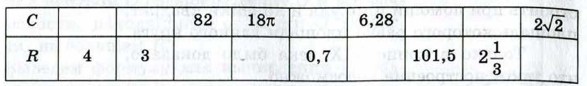1101. Перечертите таблицу и, используя формулу длины С округу, ности радиуса R, заполните пустые клетки таблицы. Воспользуйтесь значением π = 3,14.
